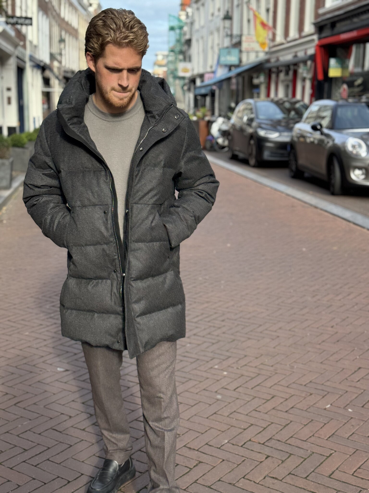 Discover the Duno Original Loro Piana Greenstorm Parka in dark grey — a perfect blend of Italian craftsmanship, innovative technology, and timeless elegance. c