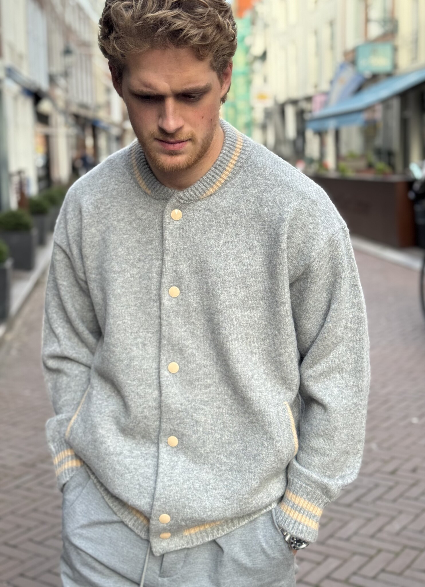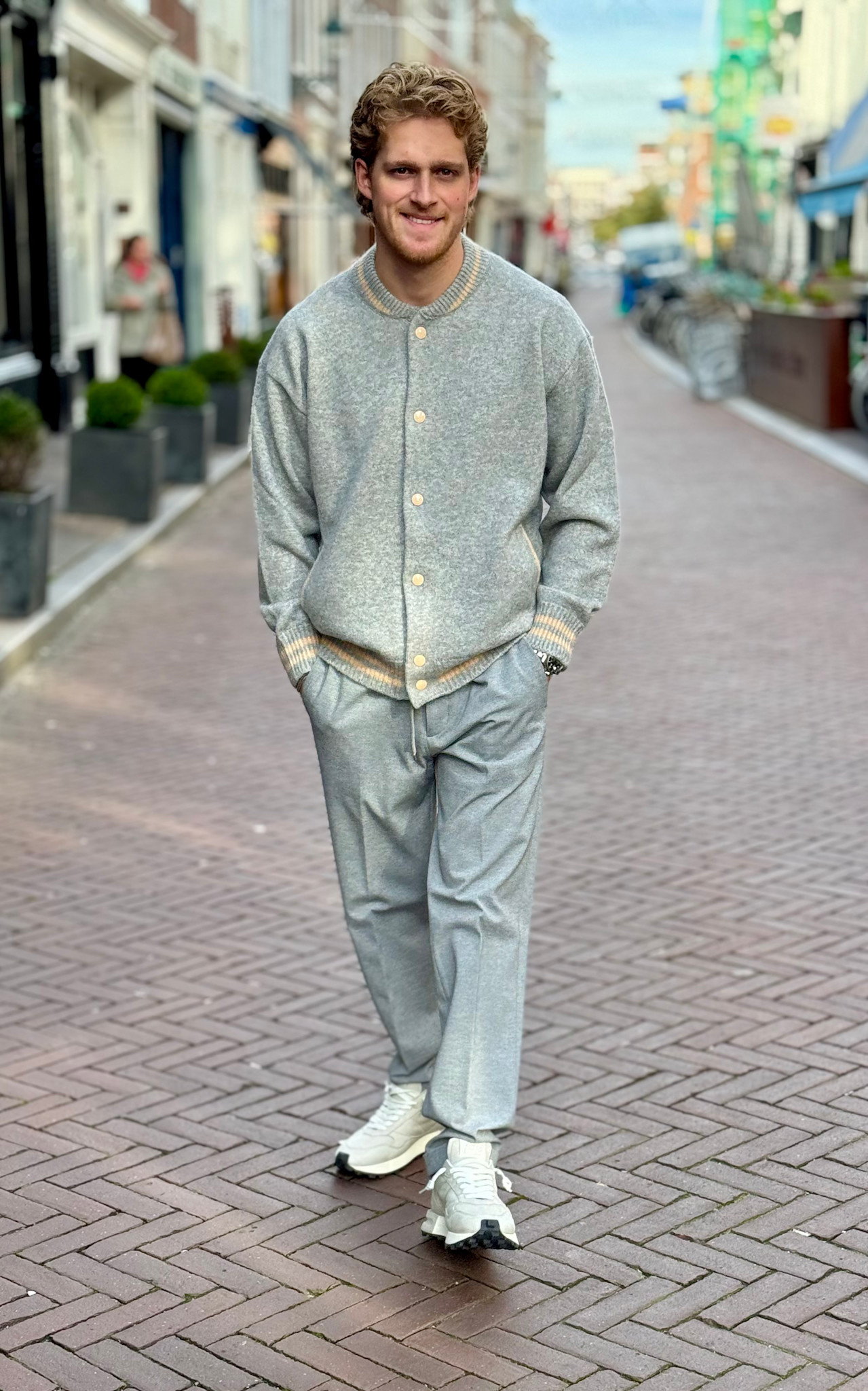 This Laneus bomber jacket is an iconic piece, crafted from a fine cashmere blend in a plain knit. Inspired by college style, it features a regular fit and a clean, refined design. The double pockets add functionality and continuity to the look, while the front closure with matching snap buttons completes the design in a practical and discreet way. It's enhanced with light-contrast ribbed details on the collar, cuffs, and hem. Made in Italy.